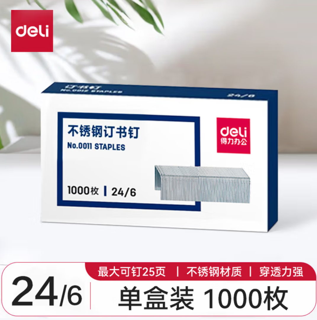 得力(deli) 订书钉加厚 厚层订书针 单盒 【升级不锈钢】12# 24/6 25页 0011